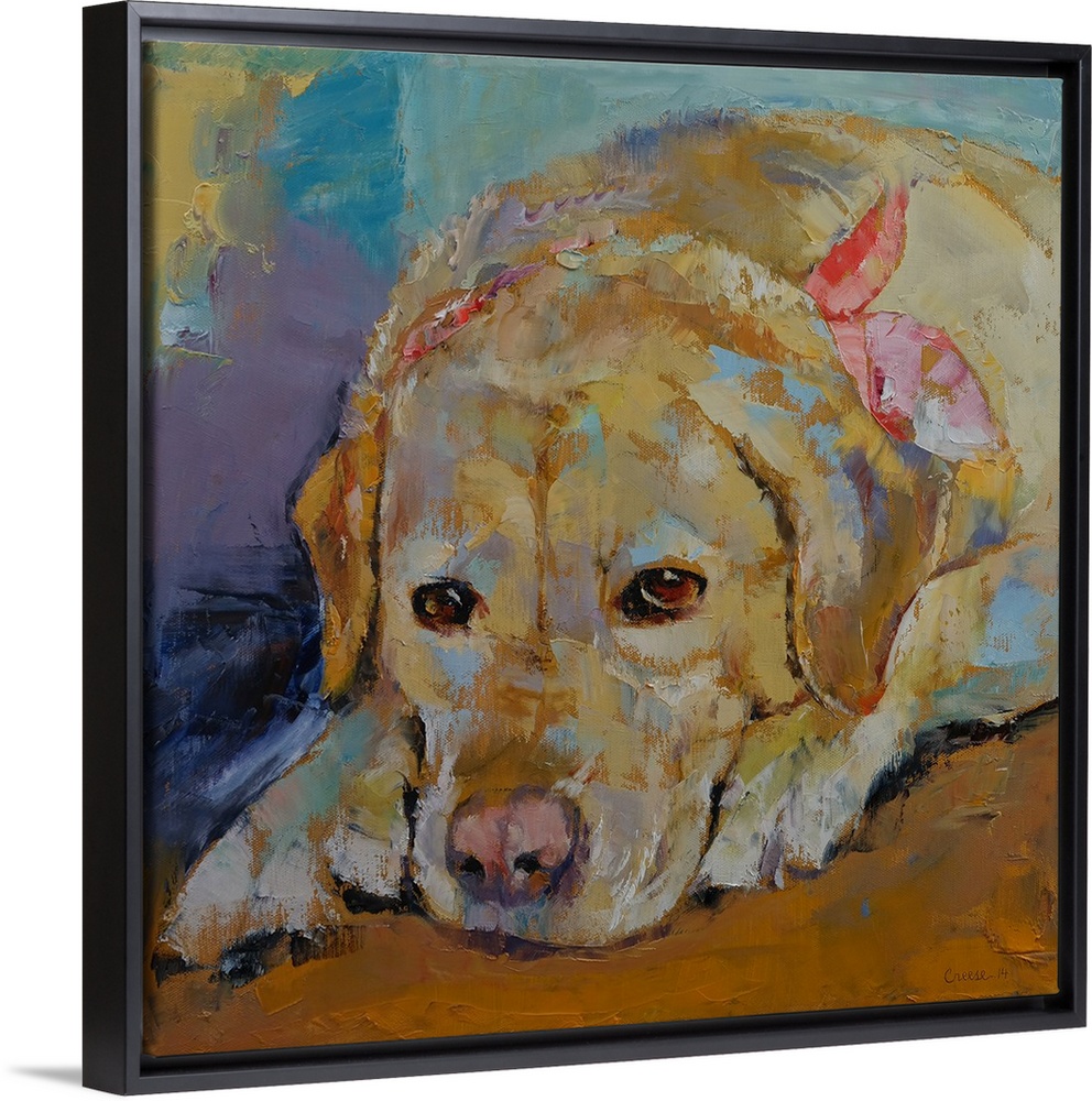 <p>A contemporary painting of a portrait of a golden retriever.</p>