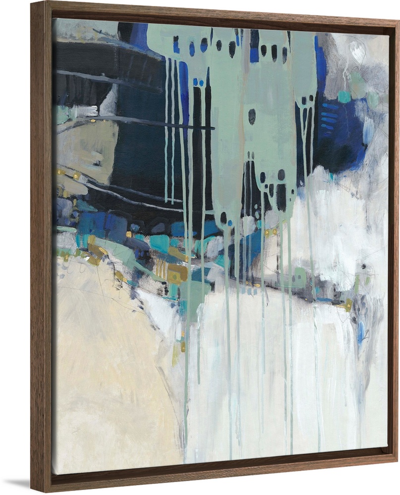 <p>Contemporary abstract painting in teal, navy, and neutral hues.</p>