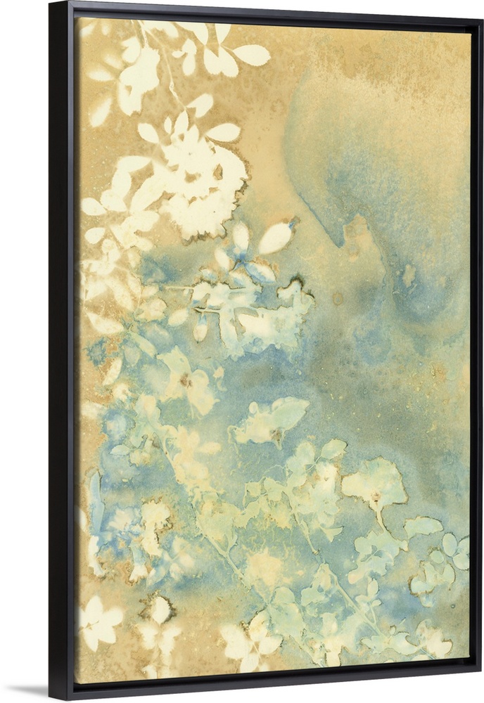 <p>Ethereal botanical art featuring creamy white leaves & flowers against a serene backdrop of soft tan, muted blues, and greens, evoking a tranquil, vintage garden feel.</p>