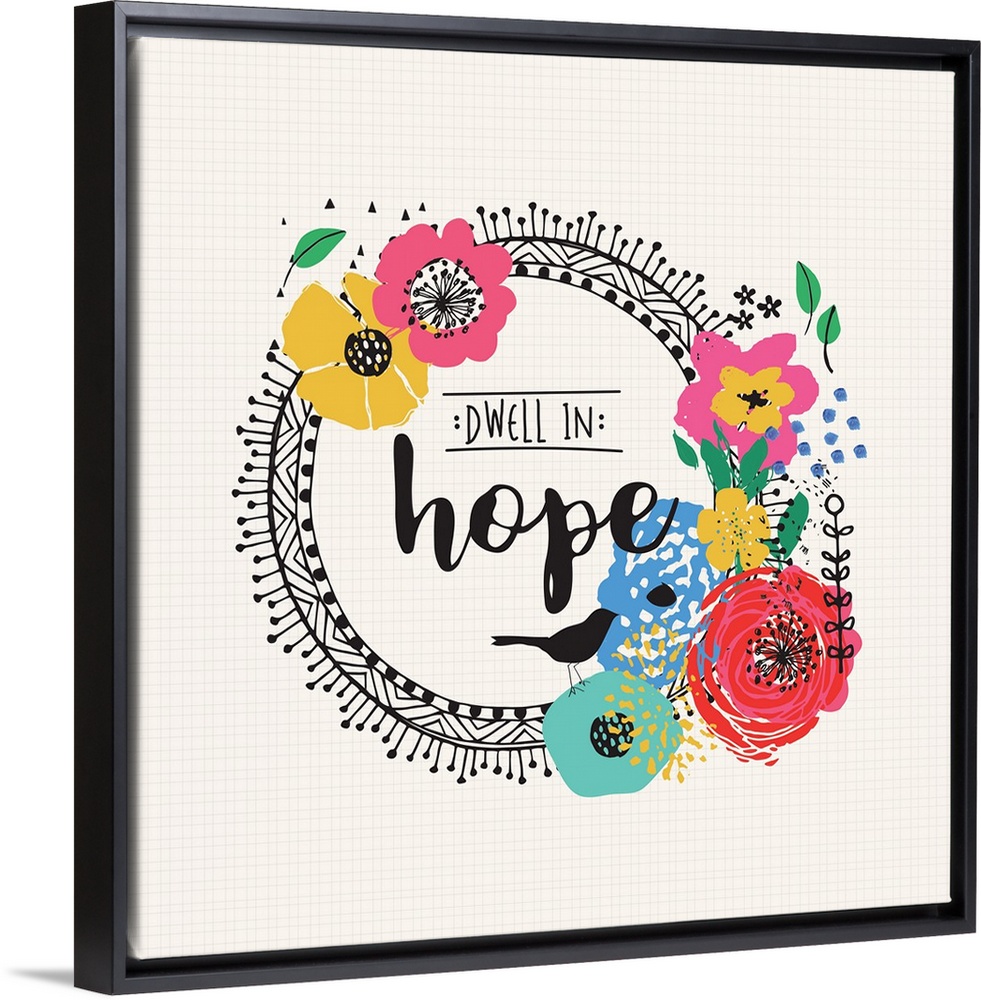 <p>Inspirational sentiment about faith framed by a wreath of mod flowers.</p>