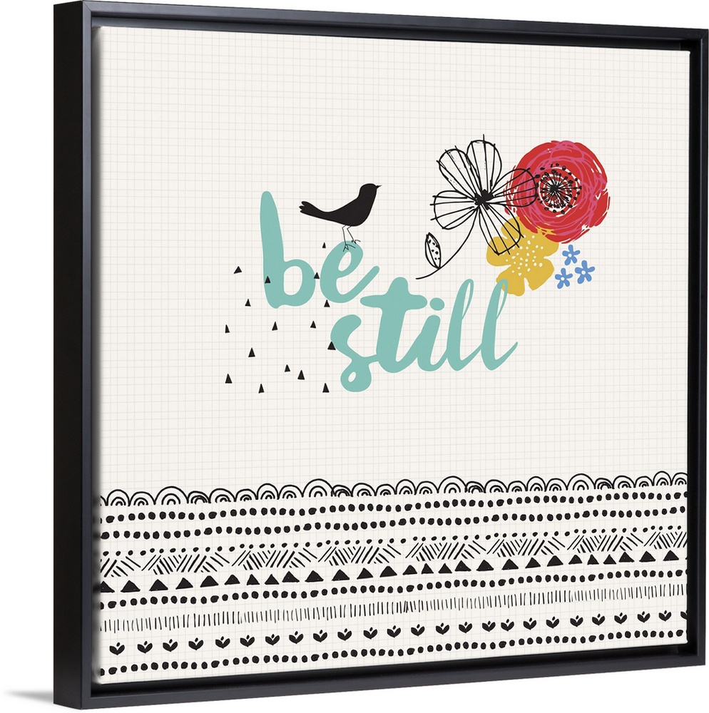 <p>Religious sentiment decorated with a bird and mod flowers over a striped pattern.</p>