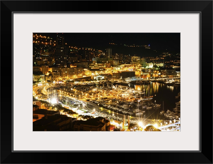 <p>The city of Monaco filled with bright lights in the evening.</p>