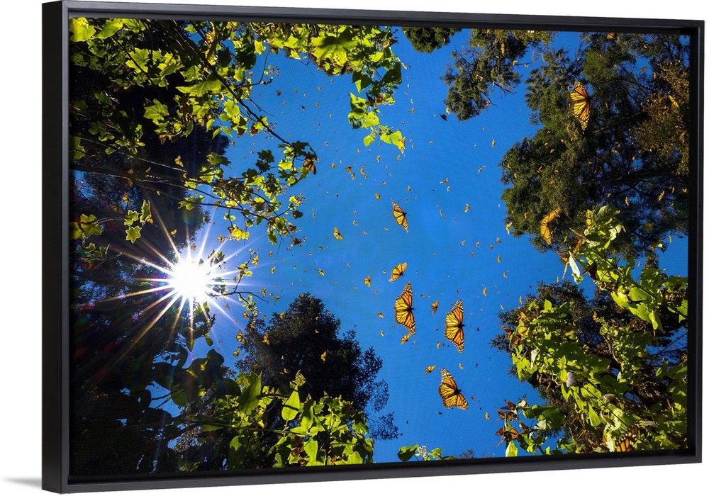 <p>Monarch Butterflies Fly through Forest Glade, Mexico</p>