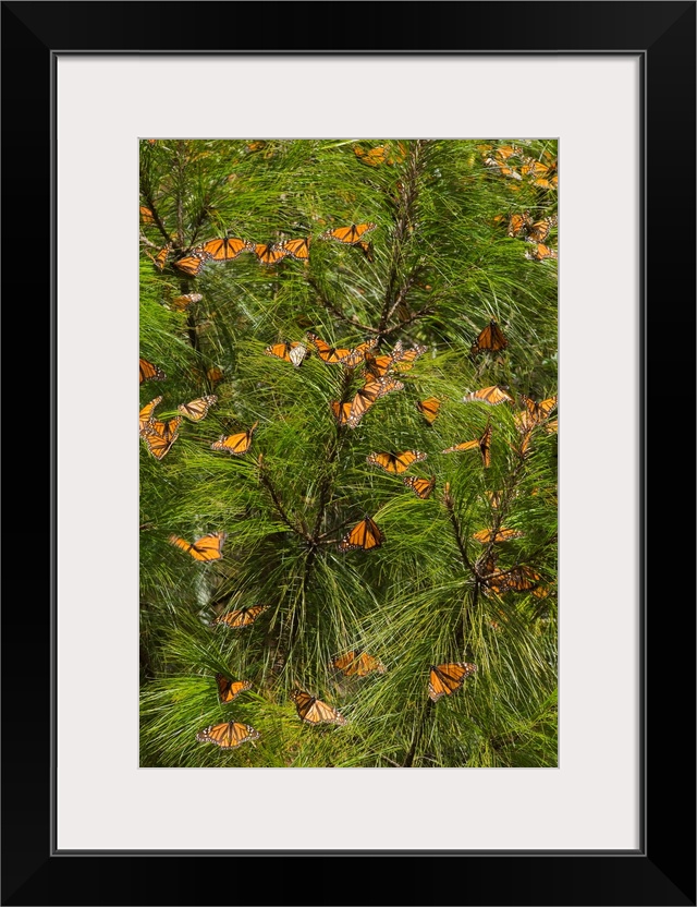 <p>Monarch Butterflies (Danaus plexippus) in Pine Trees, El Rosario Butterfly Reserve, Michoacan, Mexico.</p>