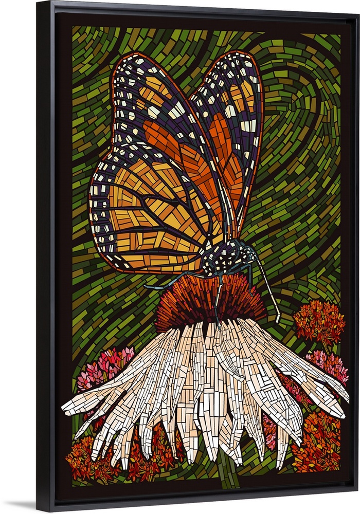 <p>Monarch Butterfly, Paper Mosaic, Green Background</p>