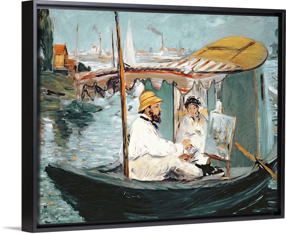 <p>Monet in his Floating Studio, 1874 (originally oil on canvas) by Manet, Edouard (1832-83).</p>