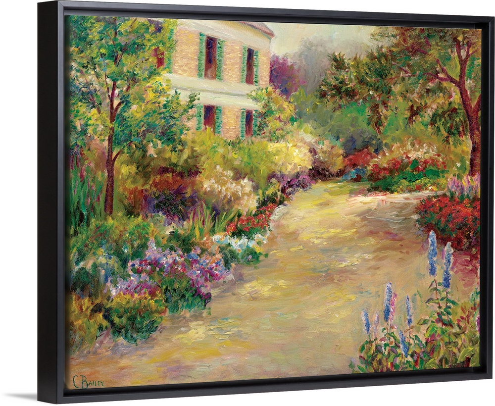 <p>Contemporary artwork of a path in a garden surrounded by flowers.</p>