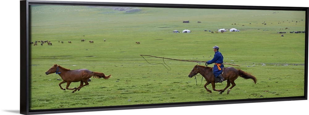 <p>Mongolia, Ovorkhangai Province, Rallying of horses at a Nomad camp in Okhon valley</p>