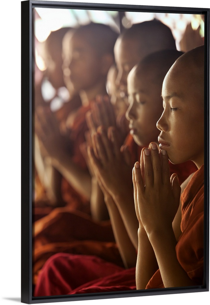 <p>Monk boys in prayer in their monastery</p>