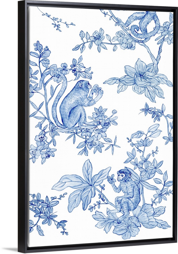 Art Blue Wall Art Chinoiserie Decorative Art Florals Painting Melissa Wang Watercolor Wildlife Monkey and Ape