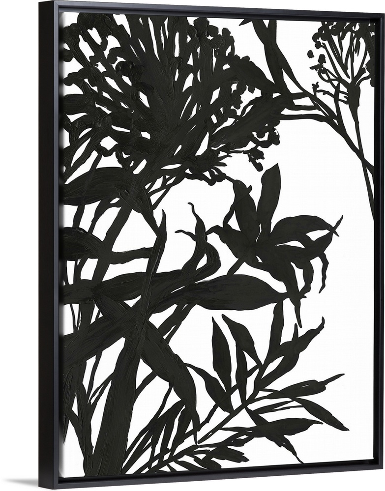 <p>Vertical painting of a flower arrangement in black and white.</p>