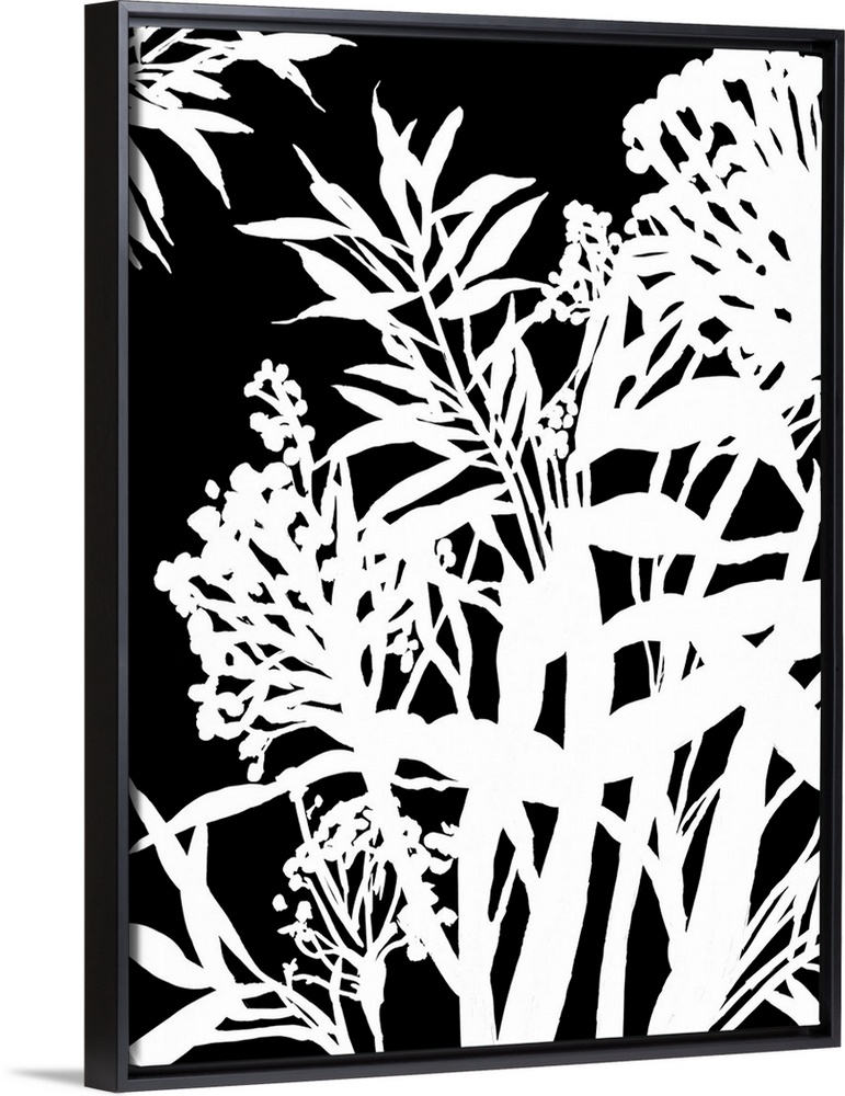 <p>Vertical painting of a flower arrangement in black and white.</p>