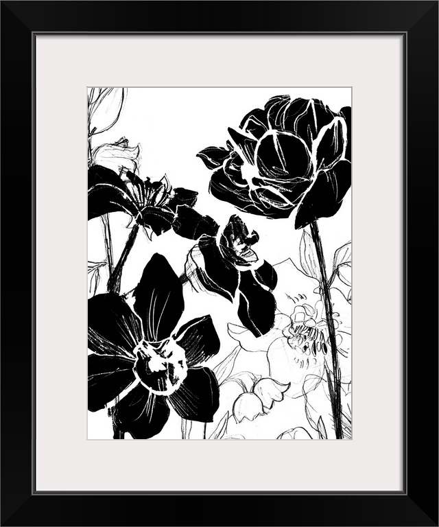 Art Black and White Florals Black and White Wall Art Decorative Art Florals Painting June Erica Vess