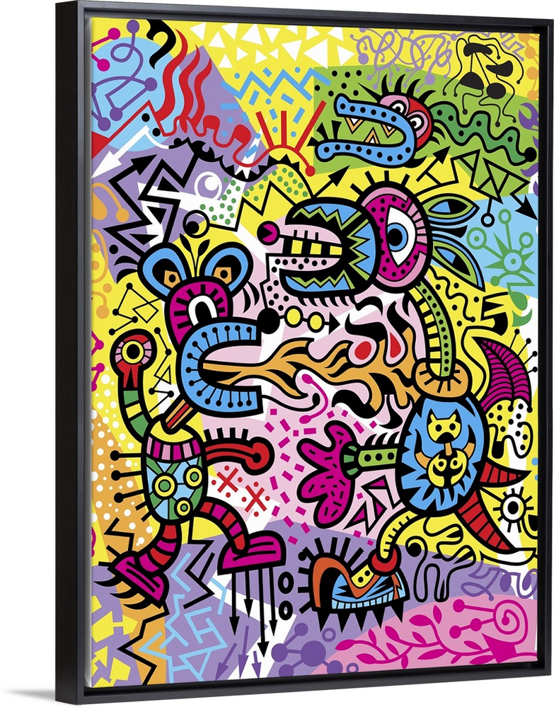 <p>Contemporary mural artwork of monsters and other abstract figures in a confusion of colors and patterns.</p>