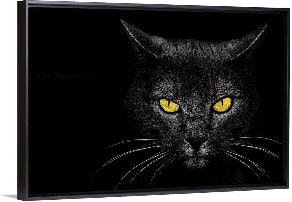 <p>Intense stare of a black cat with bright yellow eyes.</p>