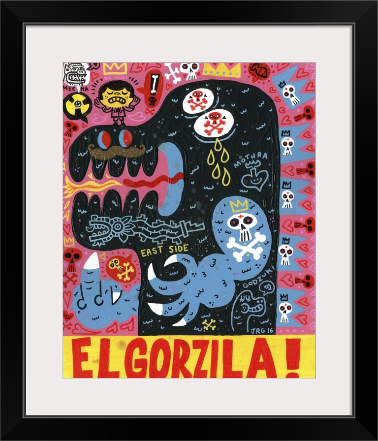<p>Latin art of Godzilla, decorated with tattoos and roaring.</p>