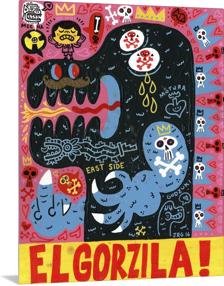 <p>Latin art of Godzilla, decorated with tattoos and roaring.</p>