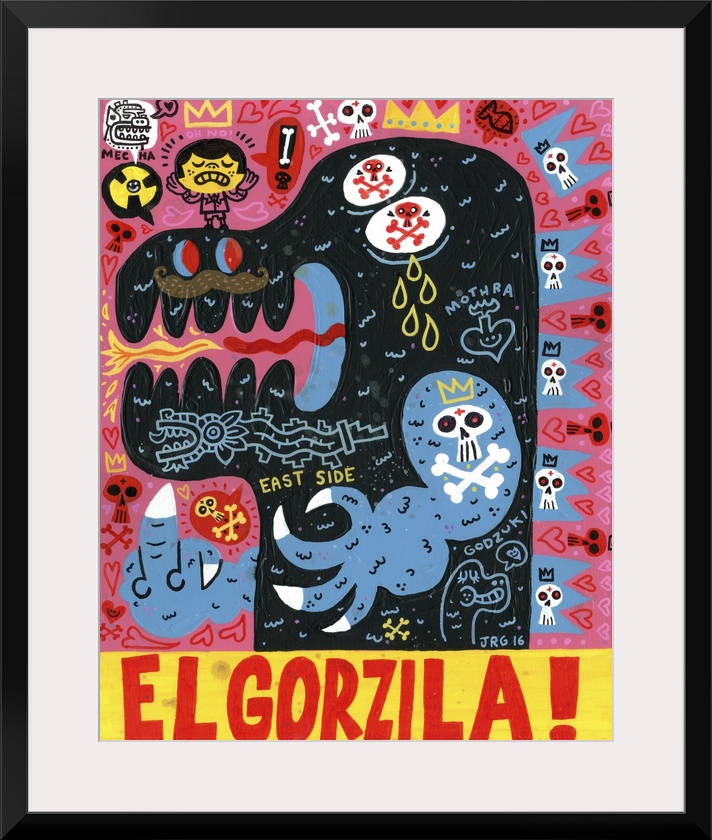 <p>Latin art of Godzilla, decorated with tattoos and roaring.</p>