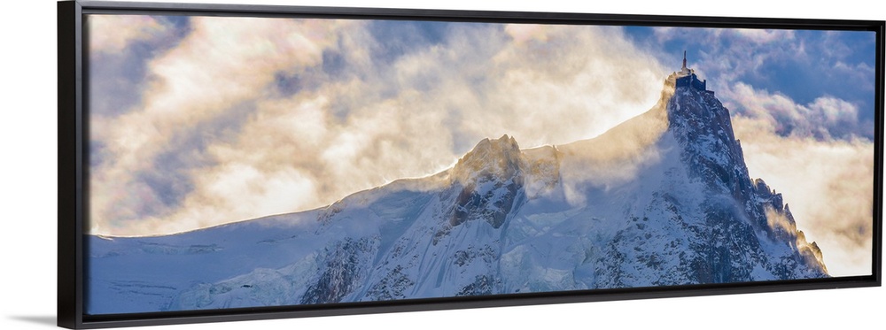 <p>Photograph of Mont Blanc surrounded by sunlit clouds.</p>