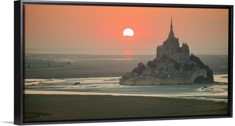 <p>Aerial panoramic view of Mont Saint Michel at sunset.</p>