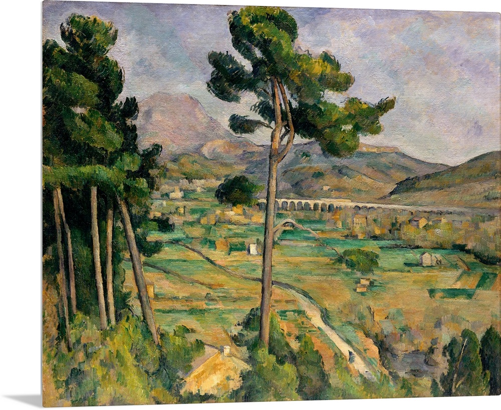 <p>The distinctive silhouette of Mont Saint-Victoire rises above the Arc River valley near the town of Aix. To paint this scene, Cezanne stood close to Montbriand, his sister's property, at the top of the hill just behind her house; the wall of the neighboring farmhouse is barely visible. Cezanne sought to reveal the inner geometry of nature, to make of Impressionism something solid and durable, like the art of museums. Indeed the railroad viaduct that cuts throught this pastoral scene is evocative of a Roman aqueduct, recalling paintings by Nicolas Poussin.</p>