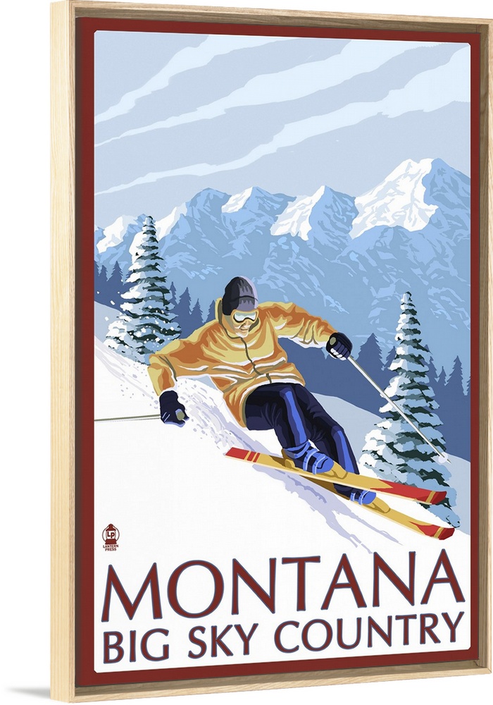 Art Lantern Press United States Montana Skiing Travel Posters Retro Travel Posters