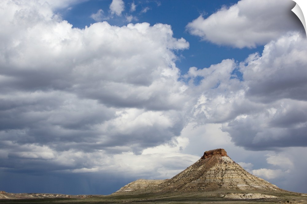 <p>USA, Montana, Terry, Gathering storm clouds over hoodoo in badlands of eastern Montana</p>