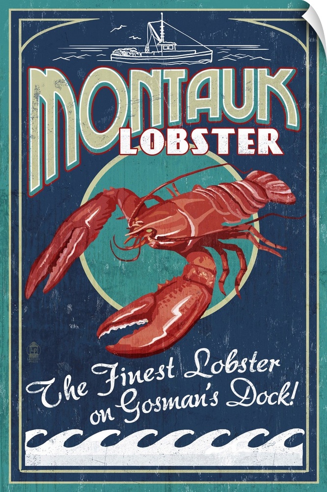 <p>Retro stylized art poster of a vintage seafood market sign displaying a lobster.</p>