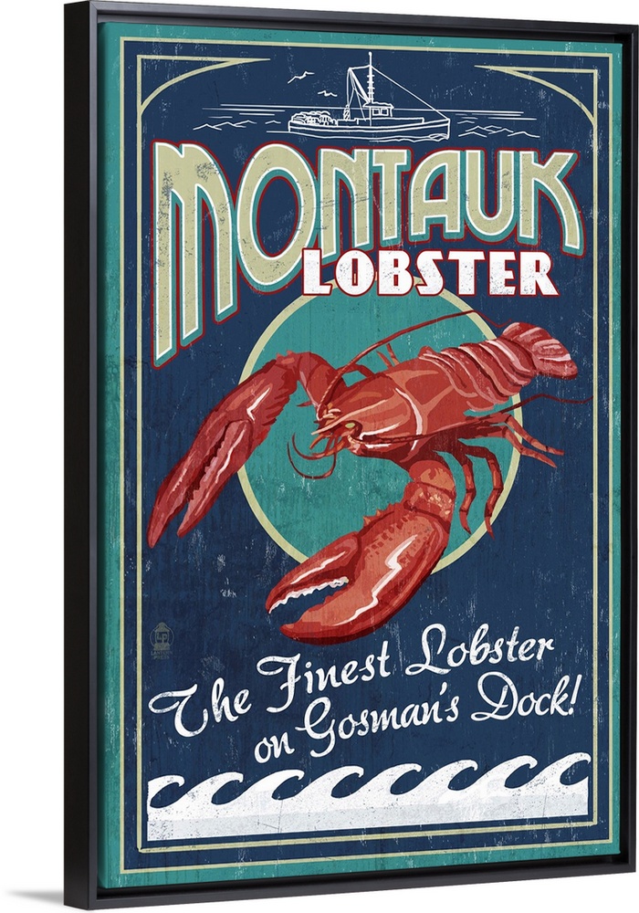 <p>Retro stylized art poster of a vintage seafood market sign displaying a lobster.</p>