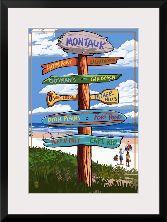 <p>Retro stylized art poster of a sign post giving different directions.</p>