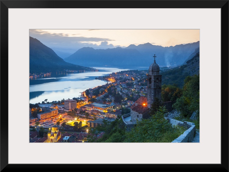 <p>Montenegro, Kotor Bay, Kotor, Balkans, Adriatic Coast, Stari Grad (Old Town) and The Bay of Kotor illuminated at dusk.</p>