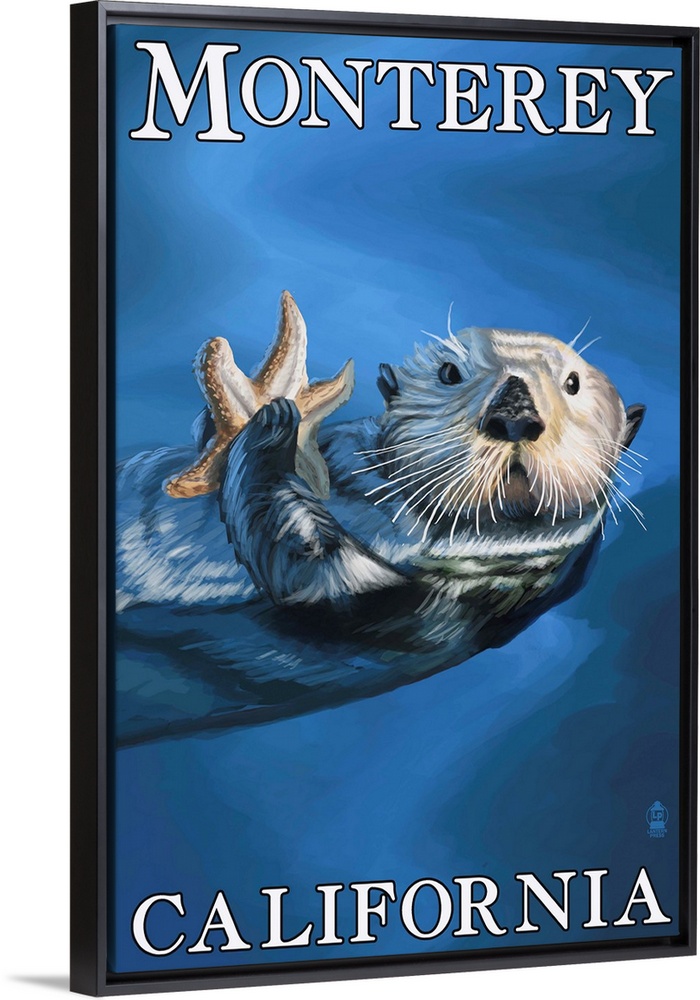 <p>Retro stylized art poster of a sea otter floating on its back in the ocean, holding a starfish.</p>