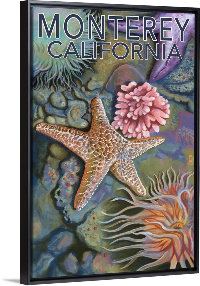 <p>Retro stylized art poster of a starfish and various marine life in a tide pool.</p>