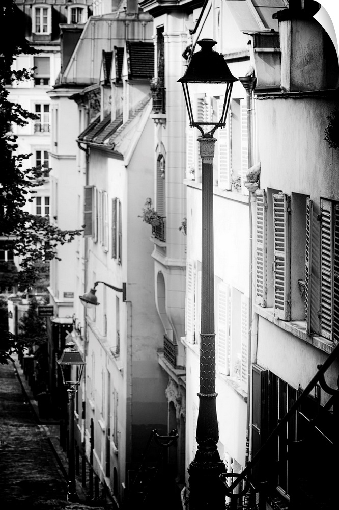 <p>A black and white photograph of a lamppost in Paris.</p>