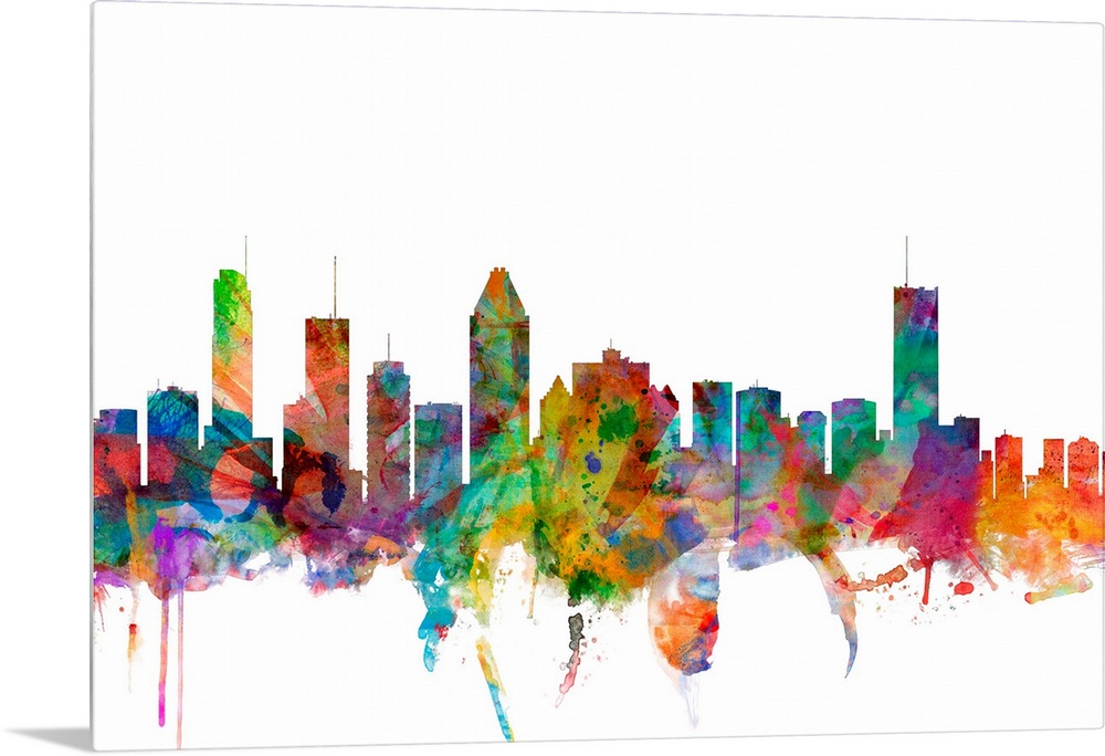 <p>Watercolor artwork of the Montreal skyline against a white background.</p>