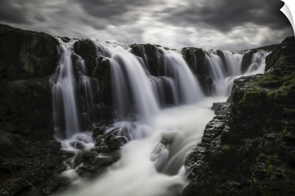 <p>Moody image of waterfalls in the central area of Iceland in a long exposure, Iceland.</p>