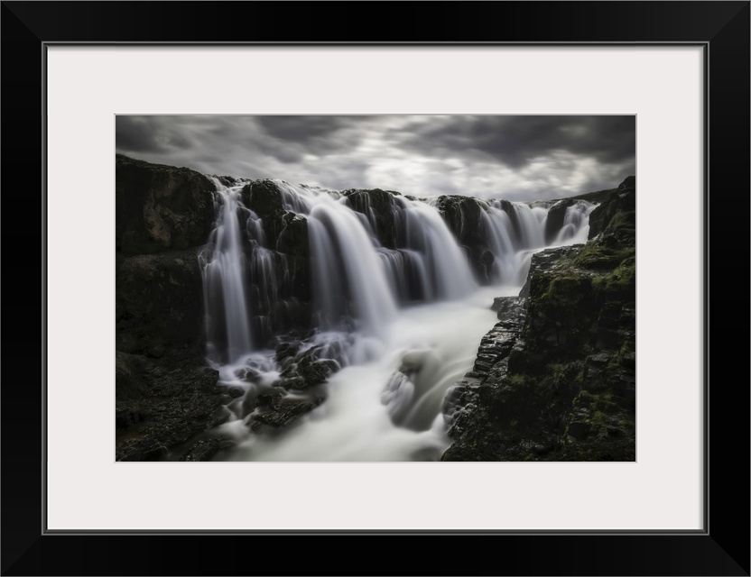 <p>Moody image of waterfalls in the central area of Iceland in a long exposure, Iceland.</p>
