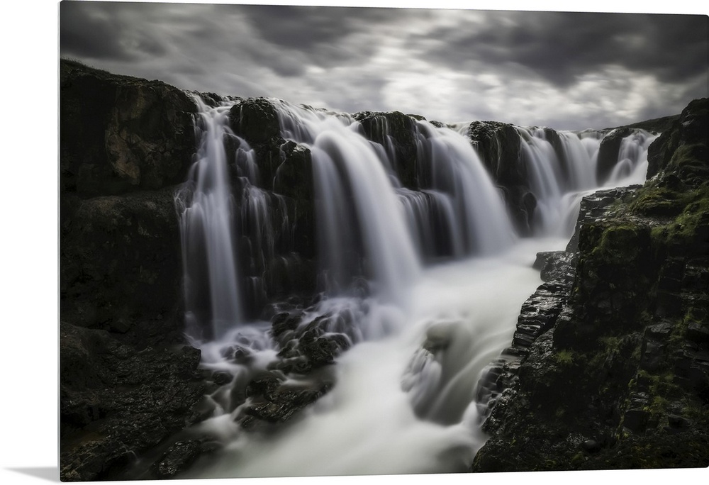 <p>Moody image of waterfalls in the central area of Iceland in a long exposure, Iceland.</p>