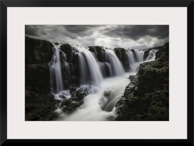 <p>Moody image of waterfalls in the central area of Iceland in a long exposure, Iceland.</p>