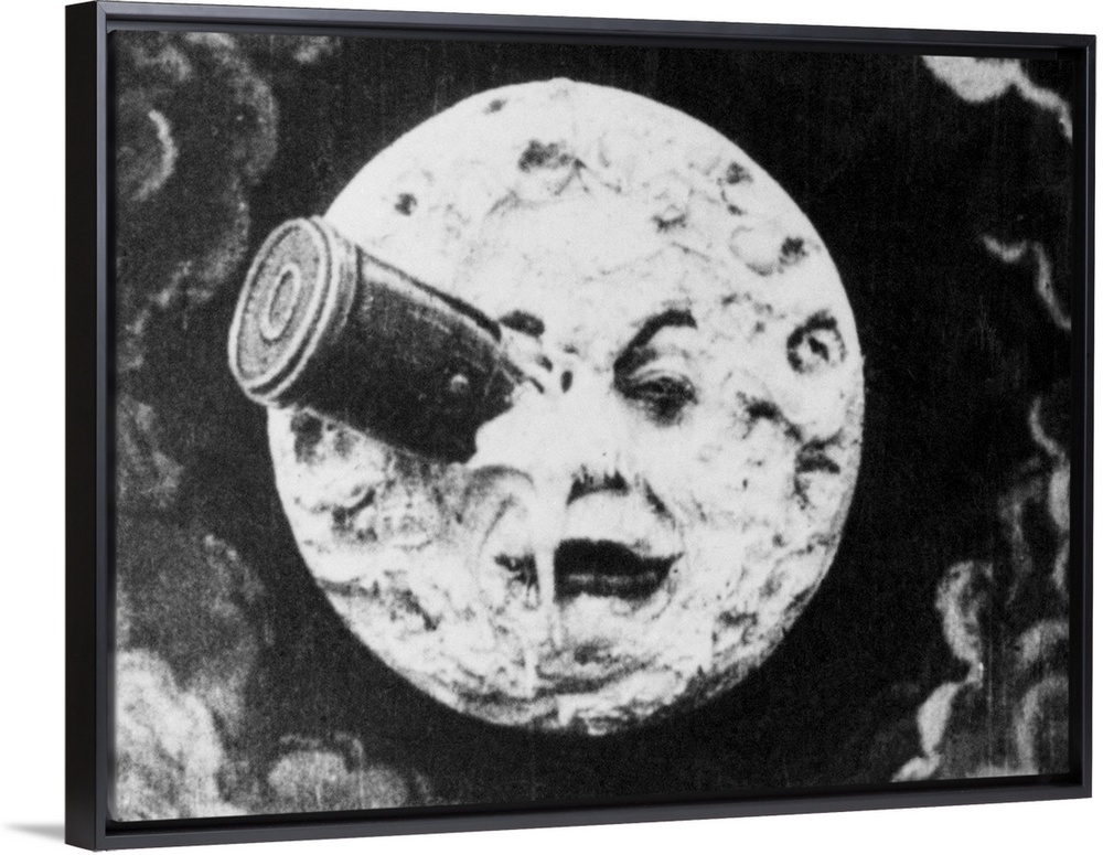 <p>Depiction of Man in the Moon with a rocket in his eye from the 1914 silent animated film A Trip to the Moon directed by George Melies.</p>