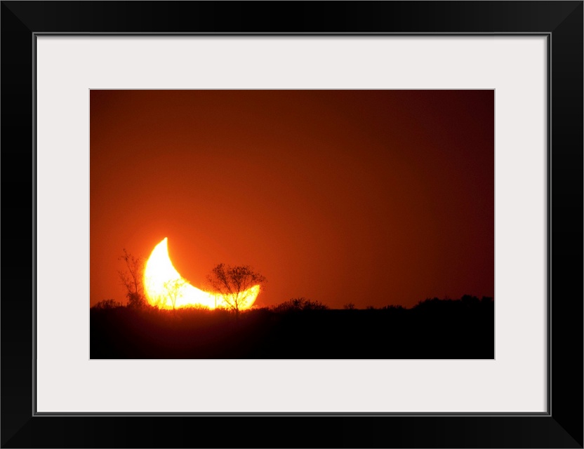 <p>Sun and moon set in a partial eclipse on horizon</p>