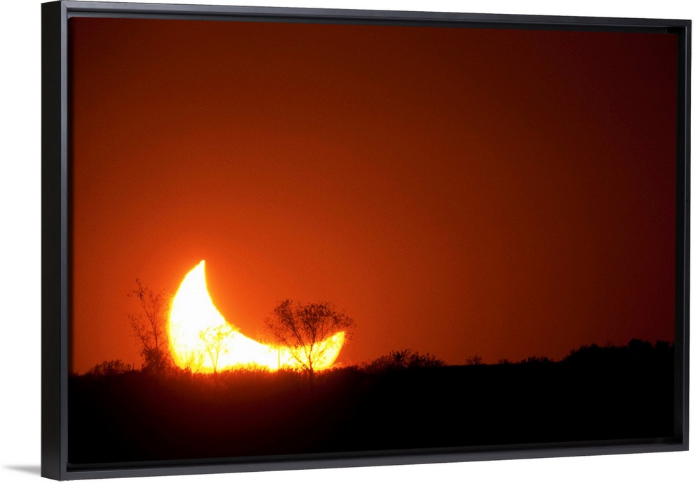 <p>Sun and moon set in a partial eclipse on horizon</p>