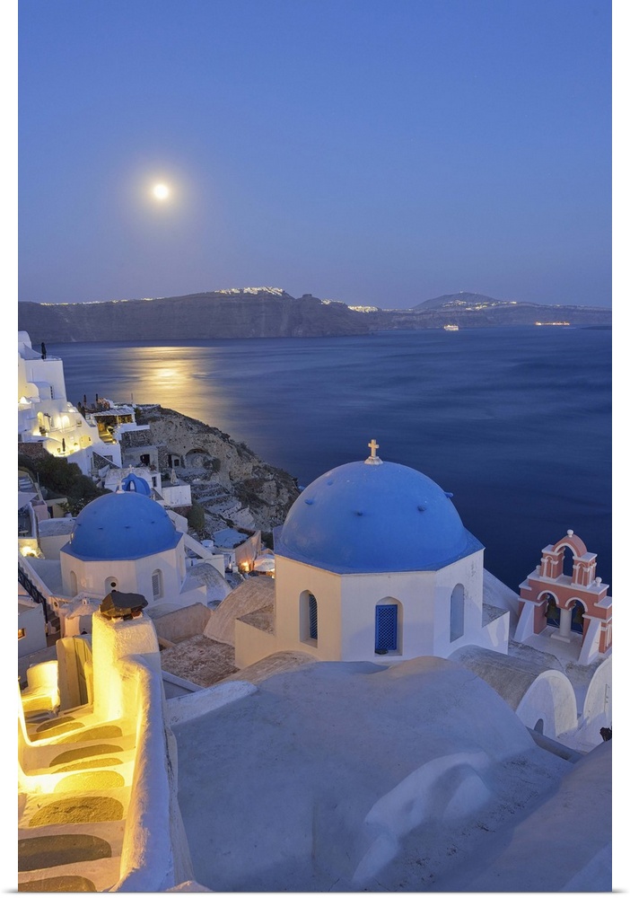 <p>Moon over the town of Oia, Santorini, Kyclades, South Aegean, Greece, Europe</p>