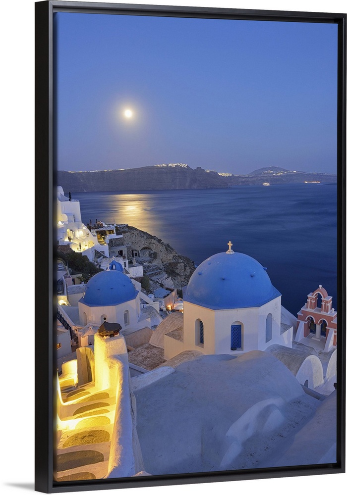 <p>Moon over the town of Oia, Santorini, Kyclades, South Aegean, Greece, Europe</p>