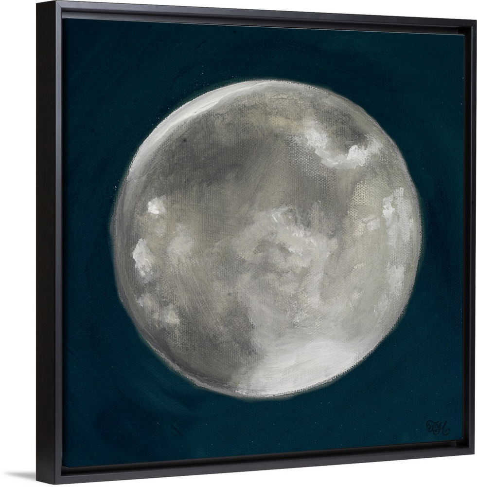 <p>Square painting of a full moon on a deep blue background.</p>