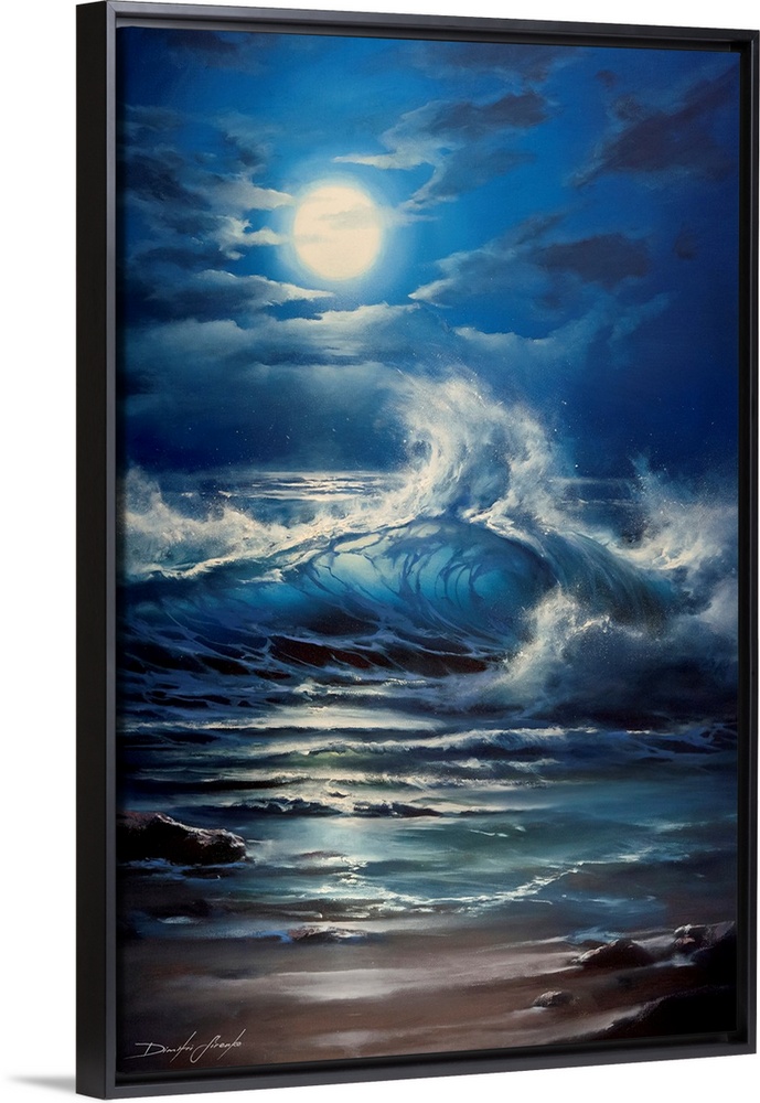 Art Blue Wall Art Contemporary Art Seascapes Moon Painting Dimitri Sirenko Wave