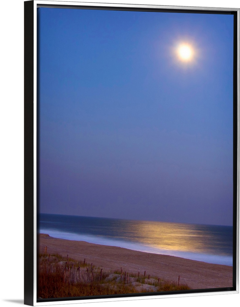 <p>This large piece is a picture of the moon shining brightly over the beach and reflecting in the ocean.</p>