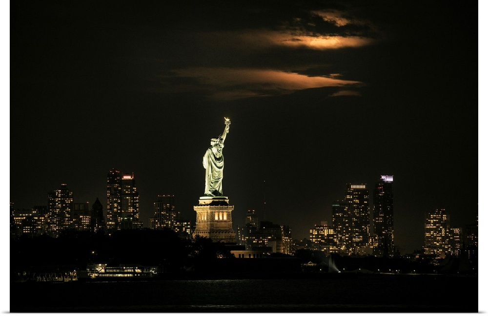 <p>Moonrise over the Stature of Liberty in New York City</p>