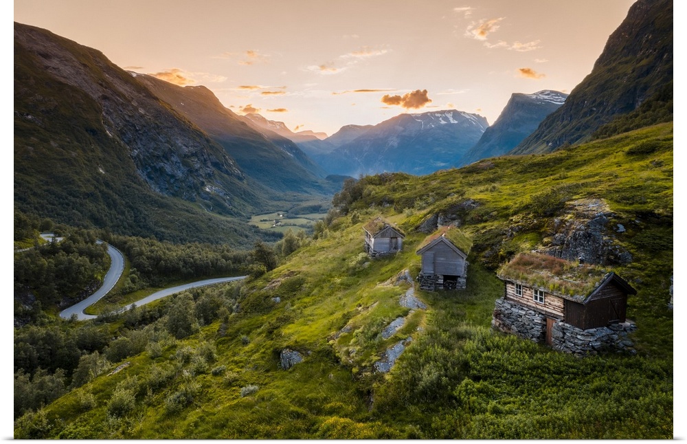 <p>More og Romsdal, Norway. Turf roof houses near Geirangerfjord.</p>