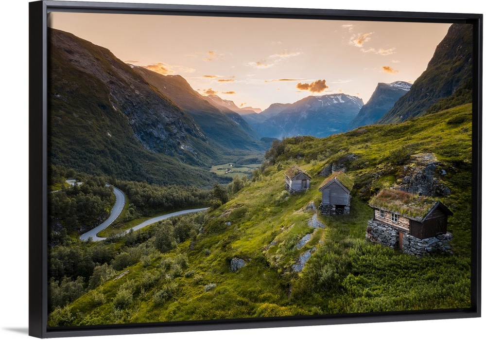 <p>More og Romsdal, Norway. Turf roof houses near Geirangerfjord.</p>